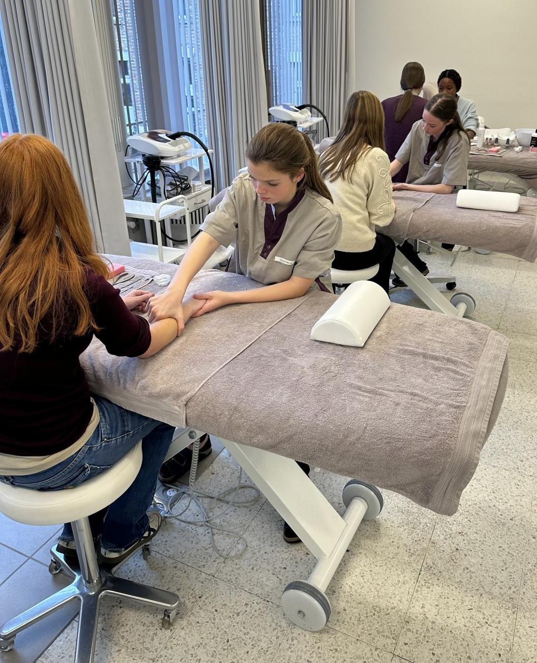In het zesde jaar loop je wekelijks 7 uur stage in een schoonheidsinstituut.